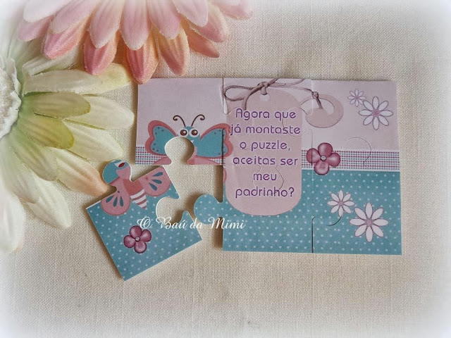 E se os padrinhos tivessem que montar um puzzle para ler o pedido? Podem encontrar vários modelos de puzzles na loja O Baú da Mimi aqui.