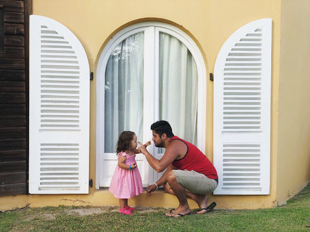 Dormia as sestas na espreguiçadeira, à sombra, e mal acordava retomava a brincadeira. Como foi a primeira vez dela nas Caraíbas, estava com um bocado de receio que ela fosse sofrer com o calor, mas correu tudo bem (em Bali fez uma pequena reação ao sol). Certificávamo-nos que bebia água várias vezes ao dia e que ficava à sombra nos períodos de maior calor.